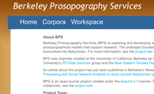 Berkeley Prosopography Services (BPS) was a project to explore and develop a prototype application to build prosopographical models that support research. The prototype focused on a corpus of cuneiform tablets transcribed into Babylonian.